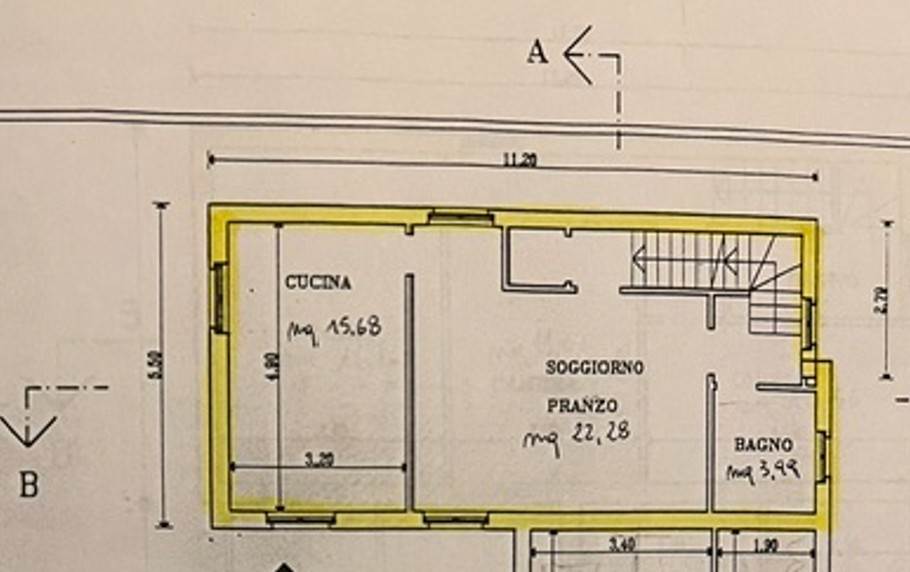 Sempre dalla zona giorno scendendo le scale interne invece accediamo al locale taverna ed al garage.