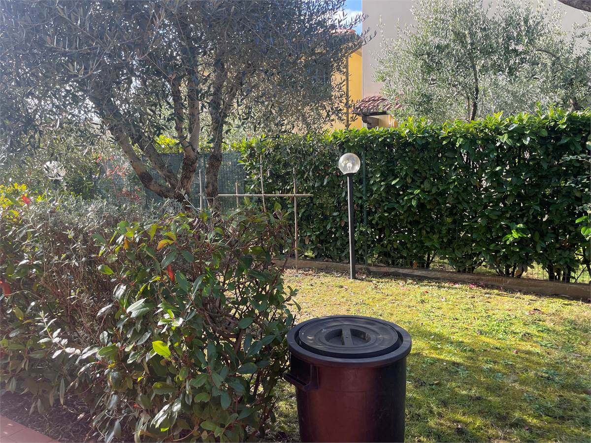 L'immobile è composto al piano rialzato da ampio e luminoso soggiorno (dal quale si può accedere direttamente al giardino) con cucina a vista, ripostiglio e bagno.