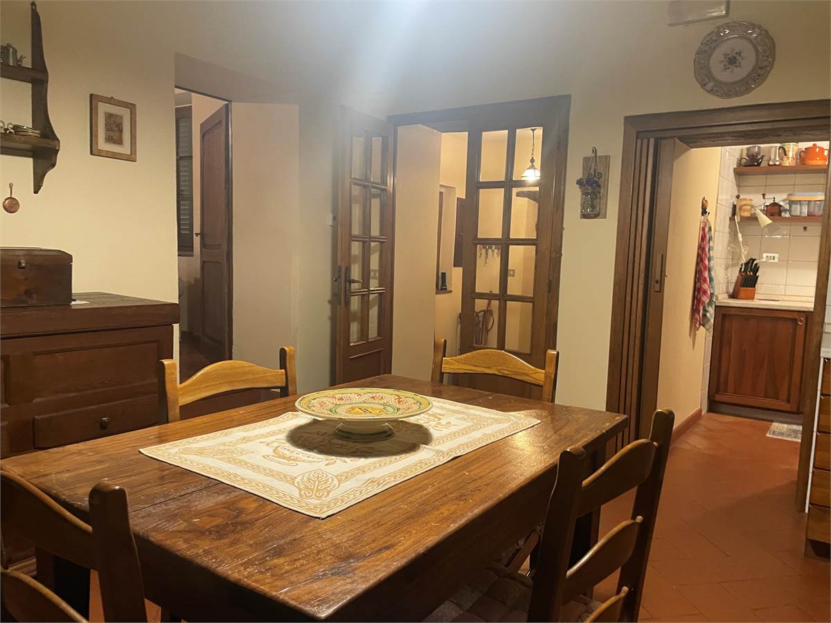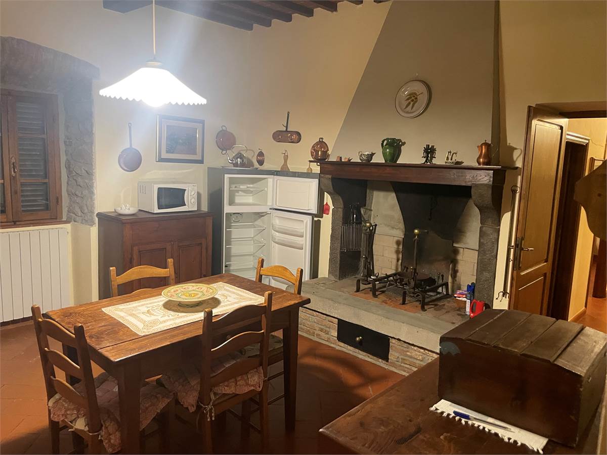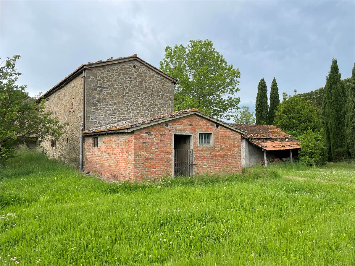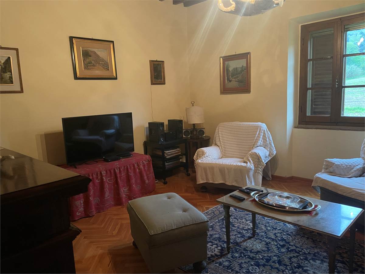 L'edificio, si sviluppa su 2 piani per un totale di circa 400 mq. L'immobile sorge immerso nel verde con i suoi 58.000 mq circa , di terreno di proprietà  che lo circondano. Al piano terra troviamo una serie di locali attualmente usati come cantine, limonaia e legnaia. Salendo al primo piano da una scala esterna, troviamo un appartamento dallo stile tipico toscano con travi a vista di circa 200 mq circa composto da loggia esterna, soggiorno. sala pranzo con cucinotot , 3 camere e due bagni Il complesso dispone anche di alcuni annessi ed è circondato da un ampio giardino e da vari appezzamenti di terreno che si estendono sul fronte principale e su quello posteriore dell'edificio. Un ottimo investimento per chi cerca un luogo immerso nella natura vicino ai principali servizi e città d'arte .