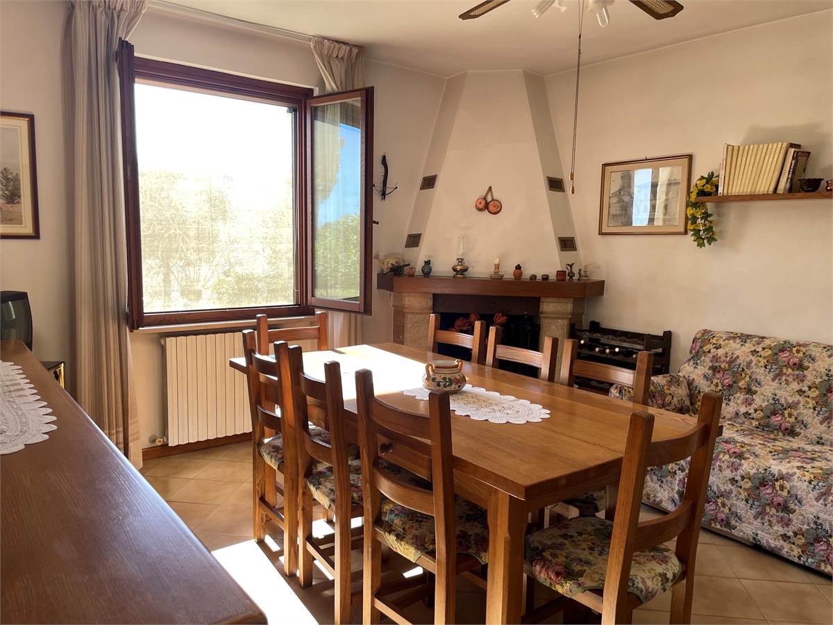 LA PORZIONE più RECENTE del casale, si sviluppa su due piani abitativi: al piano terreno si trova un grande e luminoso salone, il soggiorno pranzo con caminetto perfettamente funzionante, cucina con finestra, bagno e ripostiglio.
