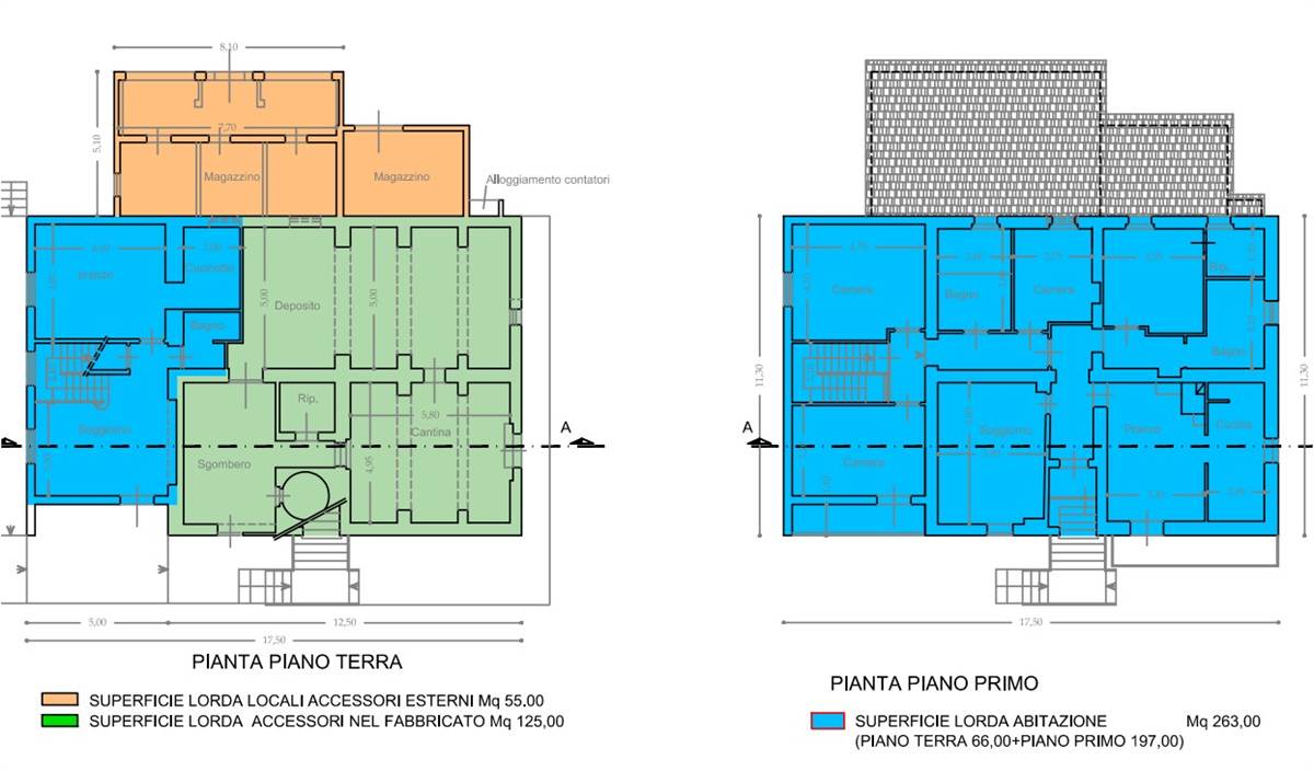 PORZIONE STORICA DEL FABBRICATO: la parte abitativa di questa porzione di immobile si sviluppa al piano primo (al quale si accede da caratteristica scala in pietra esterna),dove troviamo il Soggiorno, la sala pranzo (con camino e terrazzo), l’ampio cucinotto con finestra, la camera con stanza interna con predisposizione per fare un bagno in camera, il bagno il ripostiglio ed il corridoio dove abbiamo la porta che lo collega all’altra unità abitativa..